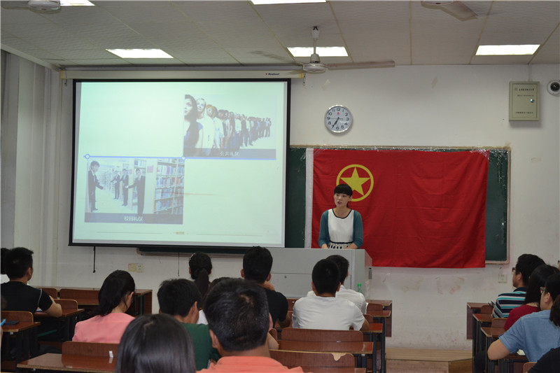 随后由来自经管学院的王书杨同学接棒,为同学们讲解贴近大家生活的电话礼仪与正装培训。俗语说“未见其人,先闻其声”,掌握电话礼仪,懂得说话的分寸,不仅能够给对方留下好的印象,更能缩短因为空间阻隔而造成的心理距离。他指出,好的形象,好的外形搭配,除了给予别人好感外,还展示出自己的品味,有利于提高自信心。