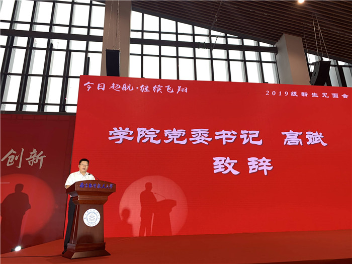高斌致欢迎词,他从学校发展、师资力量、科研成果、教学环境等方面向全体新生介绍了学校以及天目湖校区的情况,从yl6809永利官网、项目设置、学院管理、人才培养等角度,为新生讲解了学院发展历程,并对新生加入南航大家庭表示了热烈欢迎,提出了殷切期望。