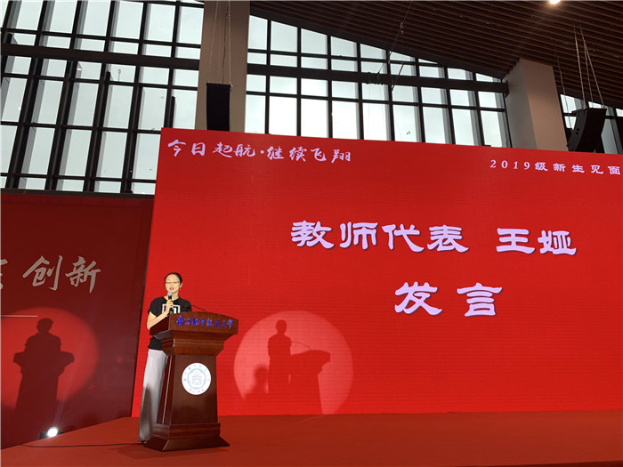 学院应用外语系王娅作为教师代表,以珍惜当下、珍惜他人、珍惜自己为切入点,对新同学提出了大学阶段的建议和期望。