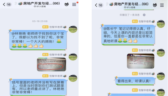 13:30,包老师开始批改同学们提交的《房地产开发与经营管理》课程作业,抽查同学们的听课笔记,对每个同学作出评价与反馈,并对班级整体学习状况作出总结。