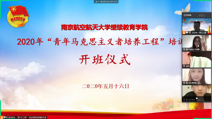 为深入推进青年马克思主义者培养工作,进一步提高青年学生干部的综合素质和能力,5月16日下午,学院2020年“青马工程”培训开班仪式顺利举行。学院党委副书记张晓燕、团委书记邓国伟、团委副书记李学东以及培训班10位指导老师出席开班仪式,由各团学组织、团支部遴选出的共150余名学员参加了这场别开生面的“云”开班。开班仪式由团学组织指导老师车拉克主持。