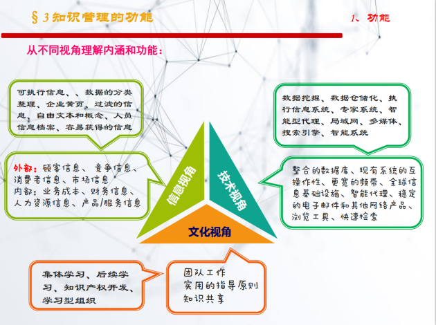 在简单回顾了第一讲的内容以后,赵宇副院长围绕知识管理的发展、概念、功能、系统及相关案例五个方面展开,对知识管理进行了深入系统的讲解。