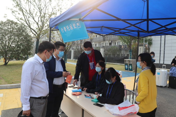 报到当天阳光明媚,早上7:30工作人员已经在各个岗位等待新生的到来,在疫情防控常态化的特殊时期,2020年的迎新工作给我们提出了更高的要求。一是严防严控、确保学生安全入校。通过体温初检、人脸识别、红外测温、通信行程码核验、苏康码核验等流程,确保学生安全入校。二是各部门联动配合,确保入校过程细致高效。学校各部门配合紧密,校保卫处维持进校秩序;后勤集团搬运行李、办理宿舍入住;信息化处保障返校信息系统流畅;校医院严守体温复检;学院教师和志愿者在各个报到点按照领取存查单、缴费、信息复查、保险办理等步骤,有条不紊地进行,高效的办事效率,保障了每一位新生顺利报道。