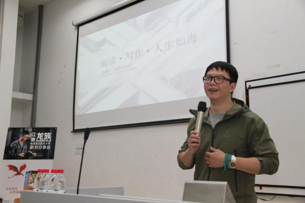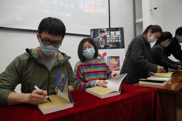 2020年11月16日晚,yl6809永利官网在13号楼报告厅举办了一场别开生面的主题分享会。本次分享会邀请畅销书作家江南亲临现场,给师生们作了《阅读·写作·人生如海》主题分享报告,并现场举办新书《龙族》签售会。学院副院长赵宇出席了分享会,全校共计500多名读者粉丝参加了本次活动。