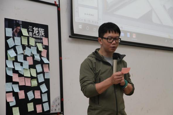 分享会开始后,本来只能容纳360人的报告厅被围得水泄不通,走廊阶梯站满了学生,同学们热情激动,现场氛围热闹非凡。分享会上,江南用生动而又诙谐幽默的语言,讲述了自己的少年文学梦想、家乡惬意时光、海外留学经历以及文学创作历程,以《阅读·写作·人生如海》为题的现场演讲引发在场同学们的强烈共鸣,大家不时报以会心的笑声和热烈的掌声。江南特别强调了深度阅读和精神成长的重要性,鼓励同学们利用好大学的课余时光,提高阅读的专注度和扩展性,勇于读难懂的书,提升精神深度。