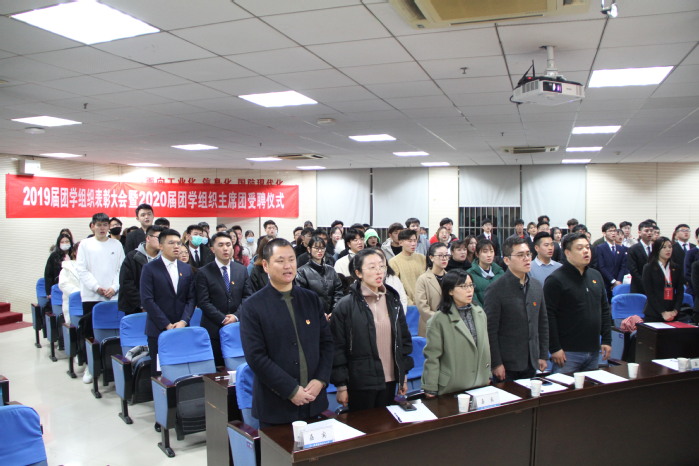 12月3日19:00,学院2019届团学组织表彰大会暨2020届团学组织主席团受聘仪式在A12报告厅举行。来自学生会等六大团学组织的学生代表们迎来了新老交替、传承使命的时刻,学院党委副书记张晓燕、团委书记邓国伟、团委副书记李学东、学生工作主管宋毓、刘超,及团委指导老师、学生辅导员、各团学组织学生干部出席大会。