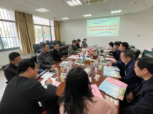 张学军、周斌院长简要介绍了南京邮电大学和扬州大学目前学历教育和非学历教育的工作现状。双方就继续教育“十四五”规划、自考助学专业培养模式、培训、学生教育管理等工作进行了交流。