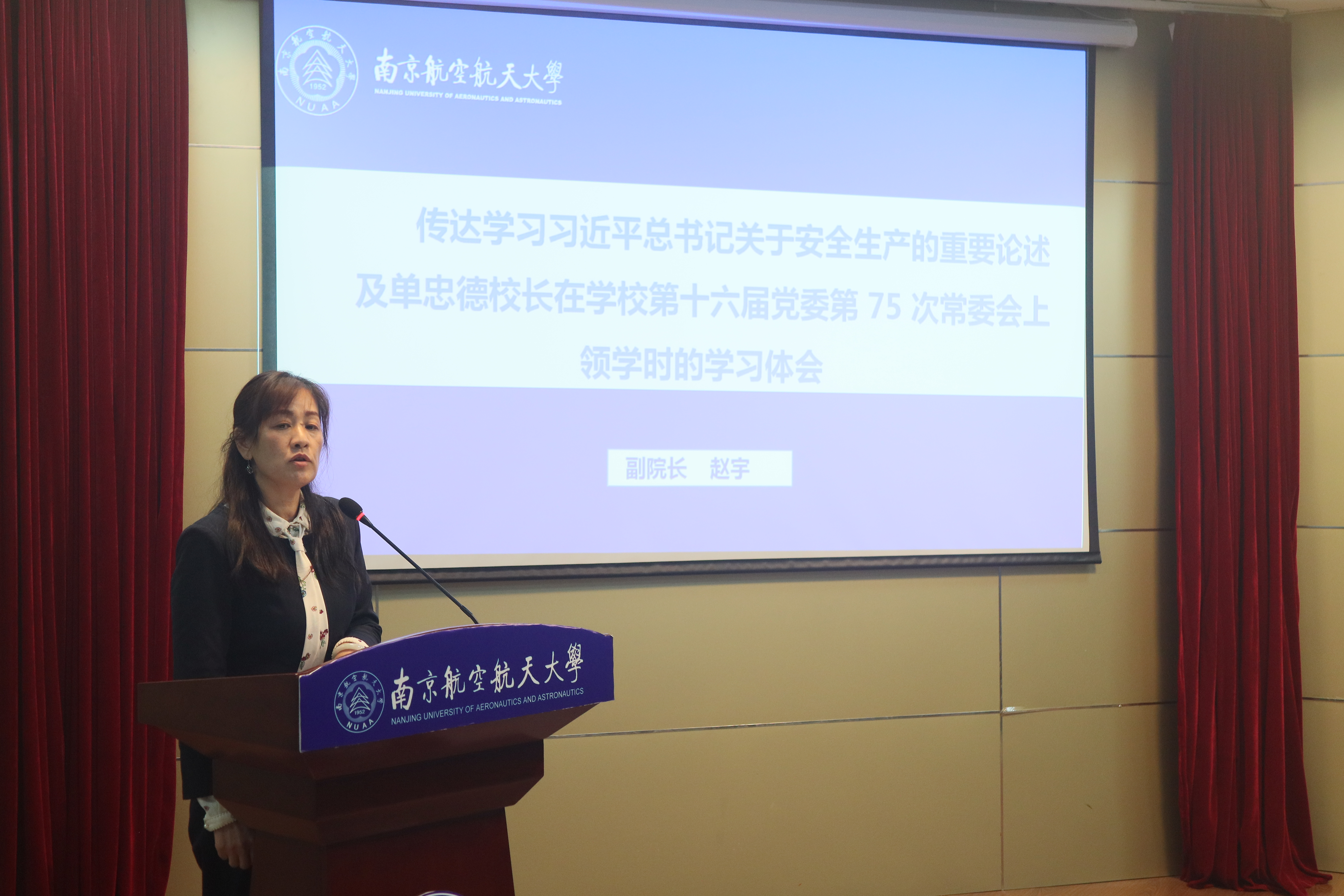 11月5日下午,学院在12号楼报告厅召开全院安全生产教育大会。副院长赵宇传达学习习近平总书记关于安全生产的重要论述及单忠德校长在学校第十六届党委第 75 次常委会上领学时的学习体会。全院教职工参加了本次会议,党委副书记张晓燕主持会议。