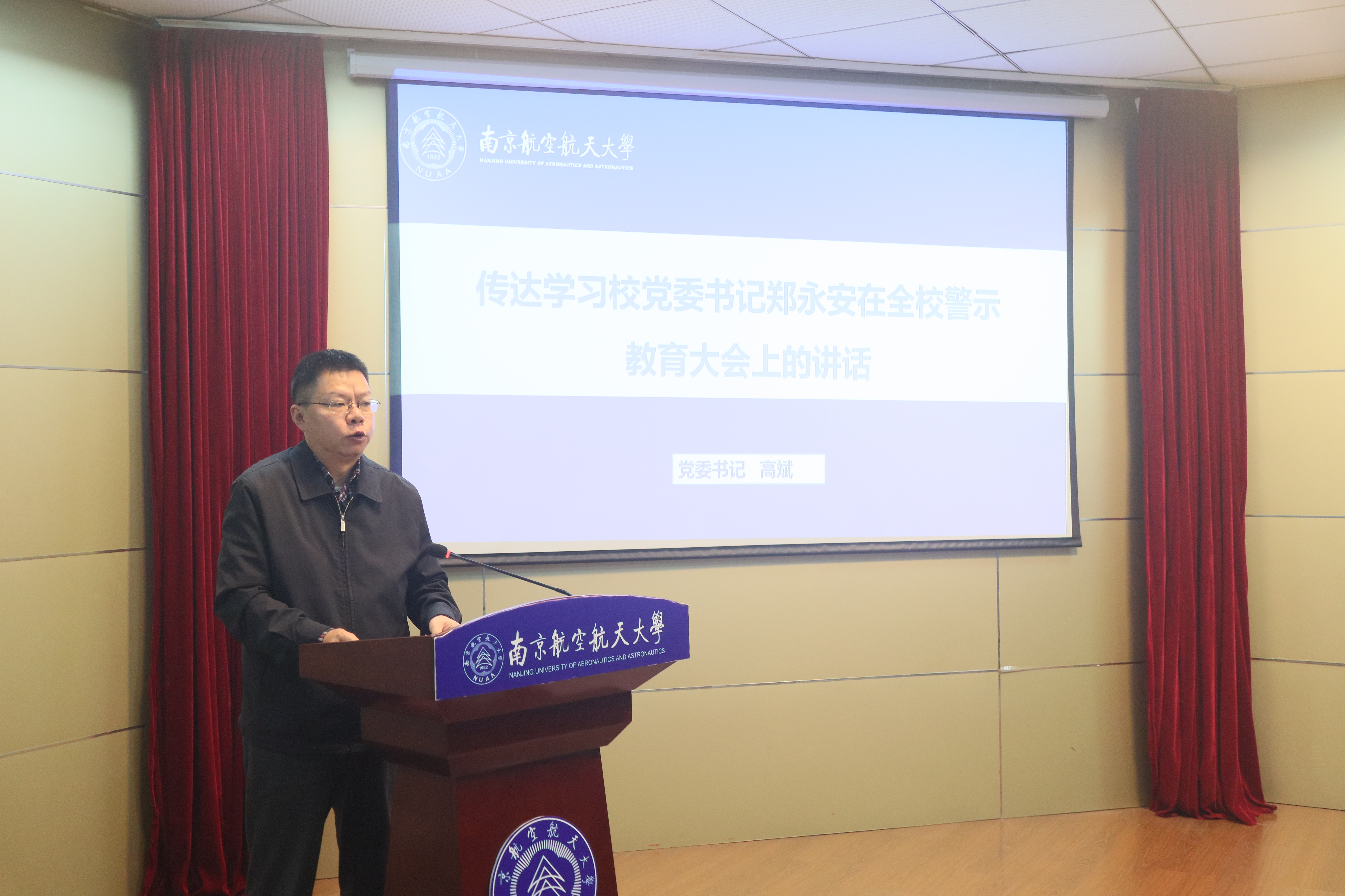 党委书记高斌传达了学校党委书记郑永安同志、校长单忠德同志在全校警示教育大会上的讲话精神。郑永安书记要求,一是提高政治站位,增强党风廉政建设和反腐败工作政治自觉;二是拧紧责任链条,强化全面从严治党政治担当;三是强化作风建设,培育清正廉洁、正气充盈政治文化;四是聚焦标本兼治,一体推进“不敢腐不能腐不想腐”。在会议总结时单校长就贯彻落实会议精神提出了三点要求,一是要提高站位,统一思想,不折不扣抓好会议精神的学习宣传贯彻;二是要突出重点,完善机制,有的放矢抓牢重点领域的自查自纠;三是要压实责任,严管厚爱,多管齐下抓实师德师风的常态建设。
