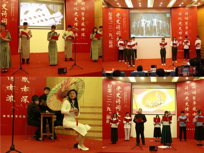 竞赛环节结束后,学院学生党支部师生党员代表带来诗朗诵《一二·九,一二·九》,表达了对这场有着重要历史意义的爱国运动的崇敬和歌颂。