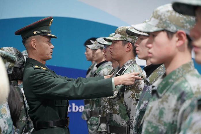 12日下午四点,队列会操在校区西操场进行,学院驻天目湖校区办公室主任刘岚、驻区辅导员到场观摩。驻区办副主任陈圆平在结训讲话中代表驻区学生工作人员和全体参训学生向教官的训练指挥表示了感谢,同时希望同学们将军训期间所学的规矩意识、军人作风带到以后的学习生活中,刻苦学习、规范言行,不断提升自己,努力为文明校园建设添砖加瓦。