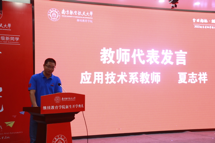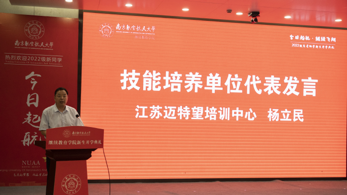随后,学院应用技术系夏志祥老师结合自身经历和执教经验,对新生提出了殷切希望,希望同学们要明确前行目标,保持学习劲头,勤于反思,在追求梦想的道路上不断前行。技能培养单位代表、江苏迈特望教育培训中心杨立民先生从技能培养单位的角度,为同学们介绍了“技能+学历”的培养模式和实践经验,希望同学们充分利用学习资源,加强技能训练,早日成为专业知识强、技能水平高、综合素质过硬的优秀人才。