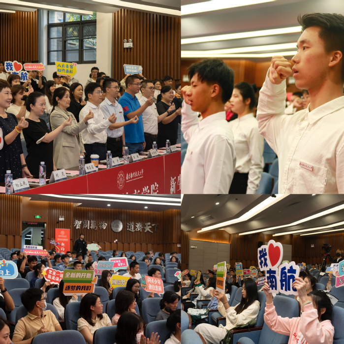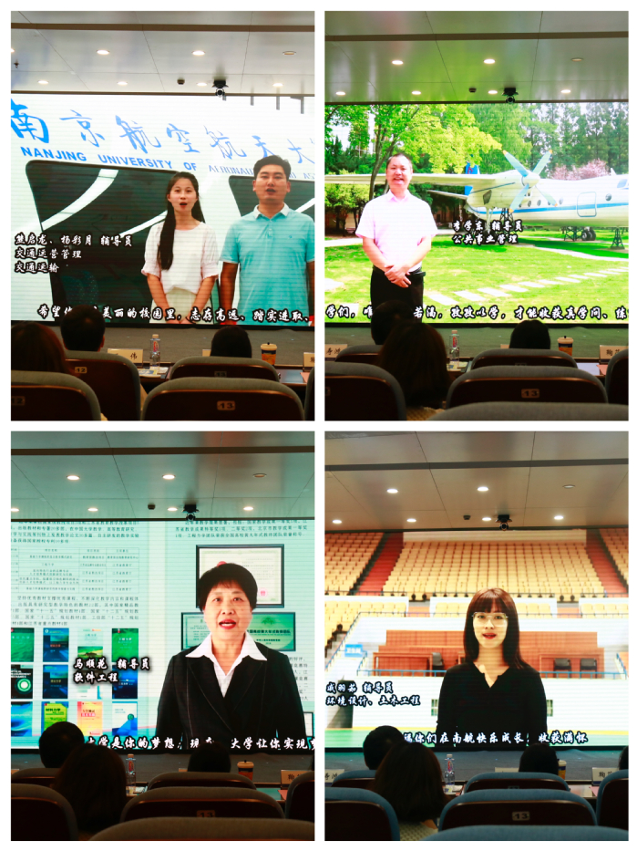 接着,学院为全体新生播放了一段精心准备的视频,展示了学院学生在校期间充实、丰富的校园学习生活,全体新生辅导员们与老生代表还为新同学送上了深情寄语,期待与同学们在南航收获知识、收获友谊、成就梦想,携手一起向未来的美好祝愿。