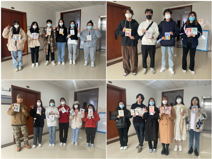 活动开始后,班级同学们踊跃参与,互相交流,分享自己的经验、想法,结合自己的专业特长,将自己的创意构思,通过色彩、插画、简笔画、漫画等形式,巧妙的用双手展现在画纸上,将画中小朋友们的活泼可爱充分的体现出来。最后,一张张创意画送到了每位小朋友手中,给孩子们了一份特别的礼物,也为小朋友们送去了来自大哥哥大姐姐的美好祝愿。