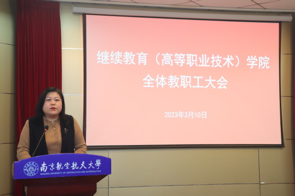 王伟对学院新学期重点工作提出了六点要求:一是坚持党建引领,持续强化工作作风建设;二是紧盯目标任务,全面提升教育教学质量;三是扛稳压实责任,继续加强安全稳定工作;四是突出特色发展,持续打响高端培训品牌;五是深化开放办学,不断提升SQA项目的影响力;六是强化队伍建设,不断提升综合管理效能。最后,他鼓励全院教职工2023年乘势而上,大胆探索学院事业转型发展,在继续教育领域彰显南航特色。