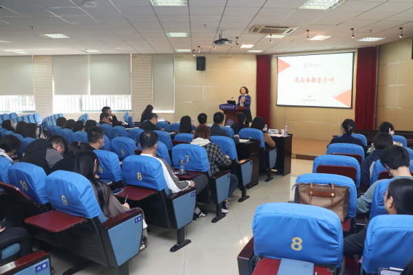 王晖围绕“我在南航当老师”主题,为老师们上了一堂精彩绝伦的思政大课。报告既带领大家重温了南航文化,又从宏观层面详细解读了党和国家对于师德师风建设的应然要求和重要意义,还从微观层面阐述了高校要把师德师风放在首位,切实将提高思想政治素质和职业道德水平摆在师资队伍建设首要位置,突出全员、全方位、全过程师德养成。她结合当前师德师风普遍存在的问题,总结了加强师德师风建设工作的主要思路。她强调教职工要热爱和敬畏“大学老师”这样一份光荣的职业,要热爱工作、关爱学生,要敬畏教师身份、严守师德师风底线,认真落实立德树人根本任务。