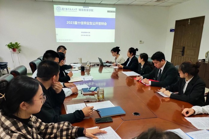 为表彰和激励优秀学生奋发学习、实践锻炼发展,充分展示优秀毕业生的精神风貌,发挥先进典范的榜样引领作用,4月23日,学院举行2023届十佳毕业生公开答辩会。学院党委副书记尹春苹、学管办主任邓国伟、正科级组织员余江波以及学生工作人员参加答辩会,明故宫校区、天目湖校区十佳毕业生候选人通过线上线下相结合的方式参加了公开答辩会。