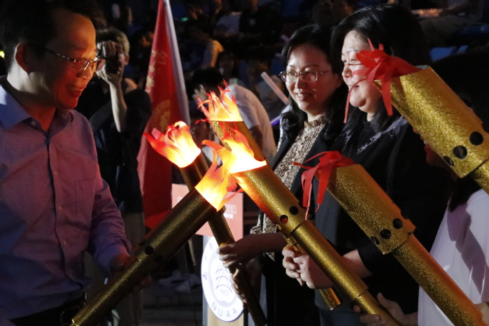 校党委副书记刘宇雷为各学院代表队点燃了火炬,五四精神随着第一棒火炬的点燃,在全校青年师生中传递。