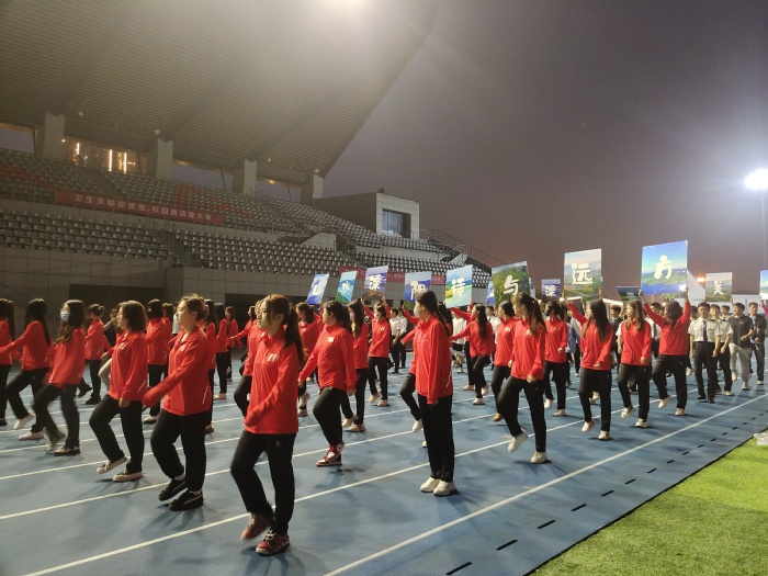 在校区领导关心和辅导员老师们的指导下,进行了为期半个月的集体训练,尤其在开幕前期,早晨5:00就起床,集体整装待发,奔赴常州奥体中心集训,没有一个学生喊过苦,说过累,高效地完成了方阵的排练。
