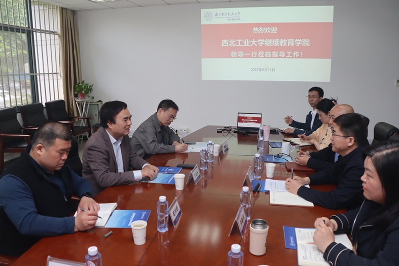 5月11日,西北工业大学yl6809永利官网院长张近乐一行来我校yl6809永利官网对党建、学历学院改革、自考、非学历教育的开展情况进行调研。yl6809永利官网党委书记刘建成、院长王伟、副书记尹春苹以及相关科室负责人参加了调研座谈会。会议由王伟主持。