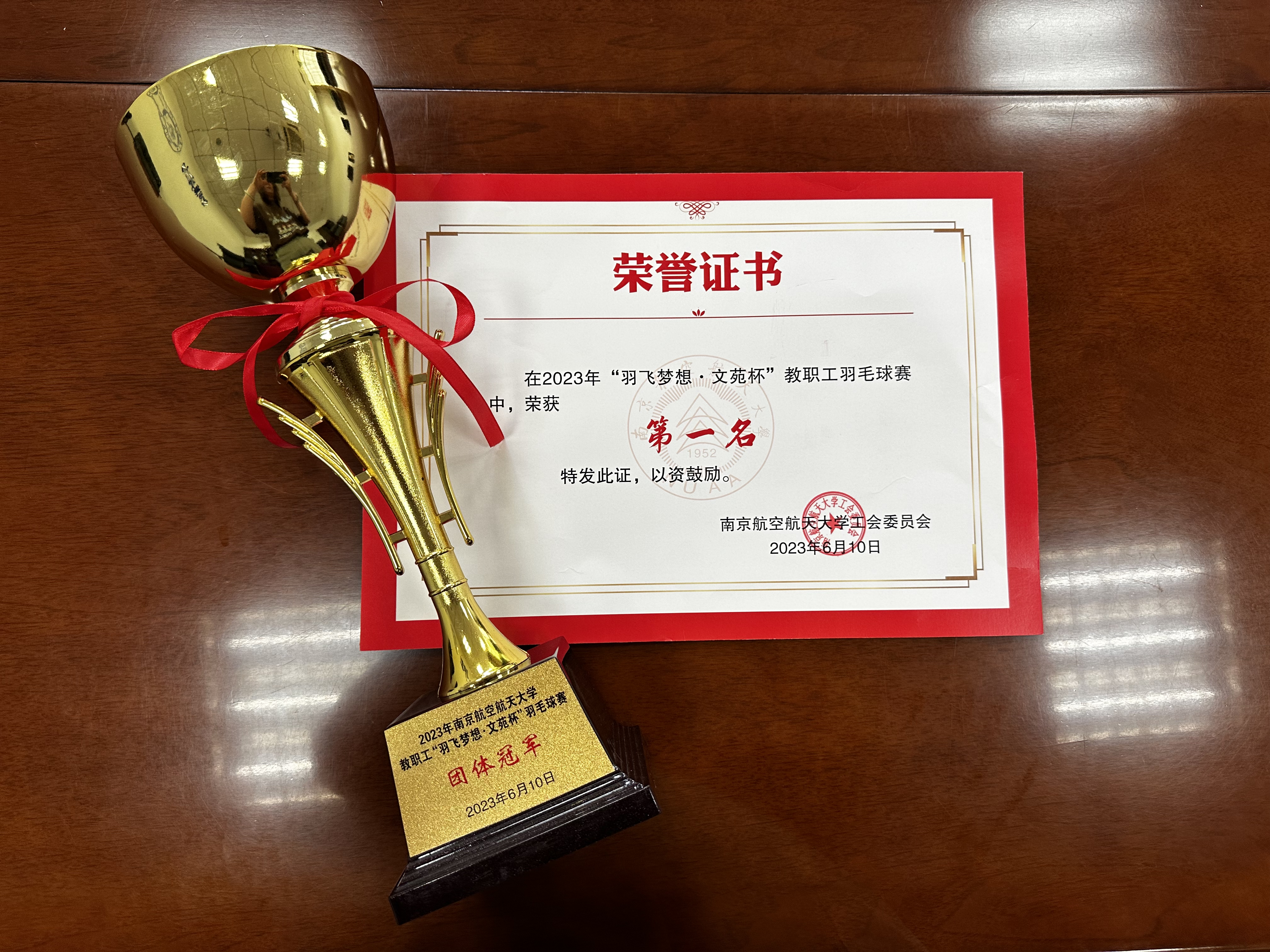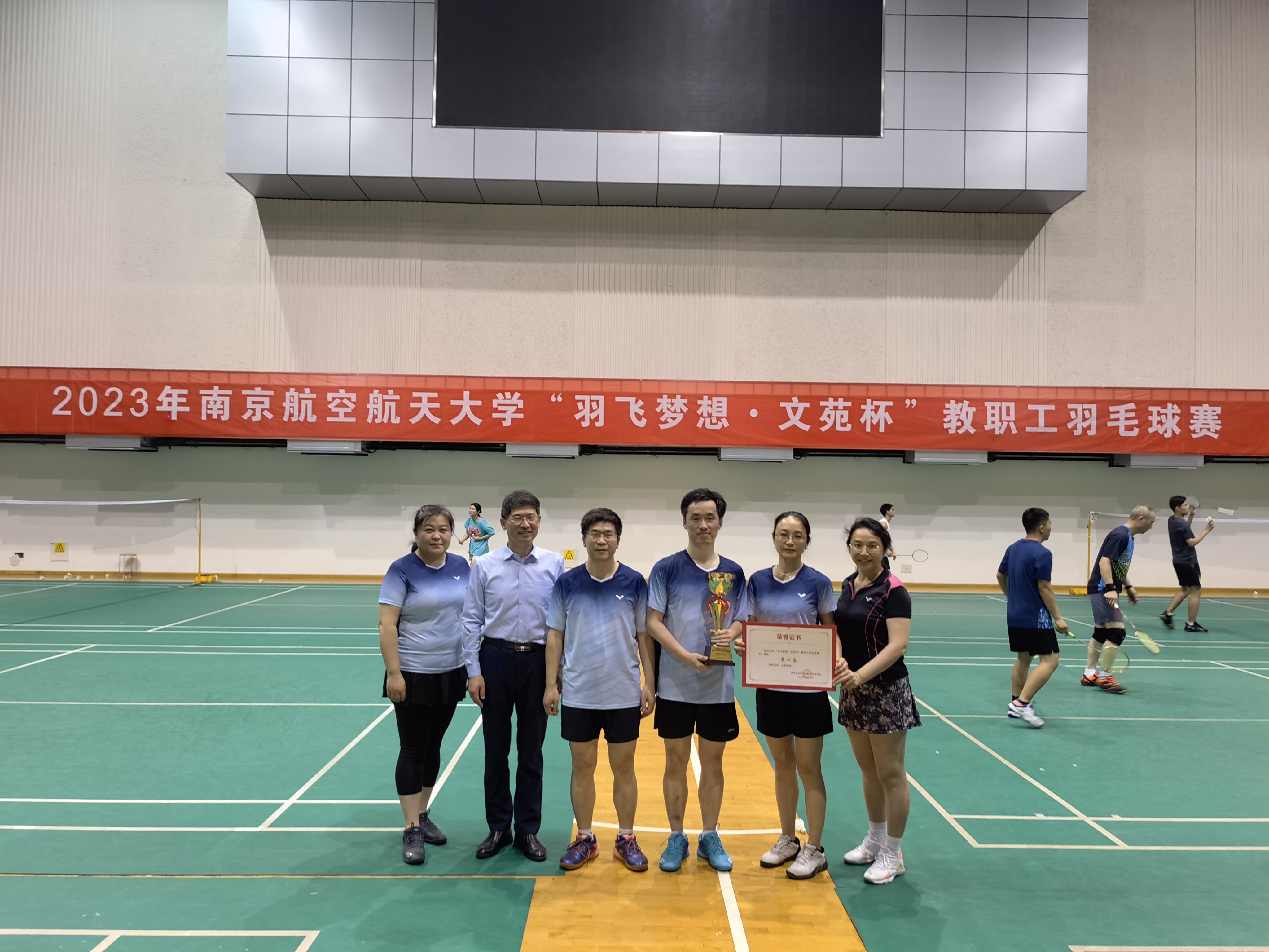 2023年6月10日,学校工会主办的2023年“羽飞梦想·文苑杯”教职工羽毛球赛落下帷幕。yl6809永利官网羽毛球队一路拼杀,在决赛中对战能源与动力学院羽毛球队,经过激烈拼搏最终获胜,捧得团体冠军奖杯。