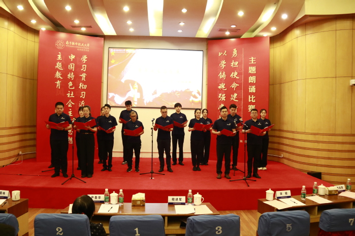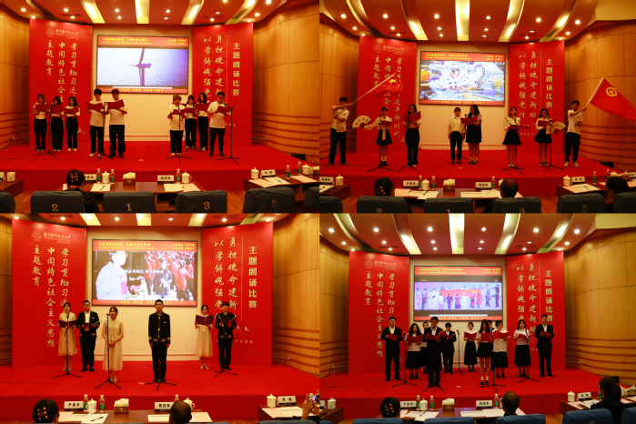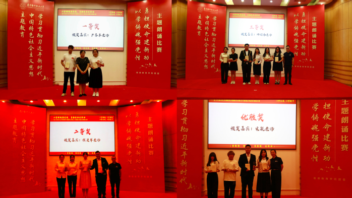 比赛环节结束后,学院机关党员、教师党员、学生党员代表为大家带来《青年成长与发展》主题朗诵,现场气氛热烈、掌声迭起,展示了学院师生从游、教学相长的学习成长氛围和师生同频共振、同题共答的责任担当。