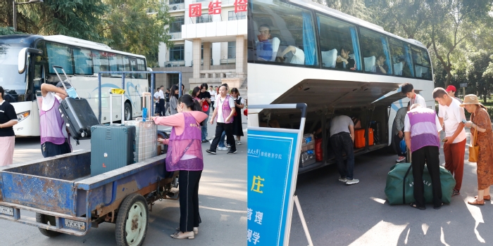 期间有家长说到:“我女儿有四五个包,一直担心她去宿舍不方便,没有想到现场报到完,志愿者帮我们卸载行李,打包贴条,每个行李上面都细致的记录孩子的名字和行李的件数,大巴车帮我们运送行李,辅导员在宿舍很热情的迎接孩子,帮忙办理了入住,我的心总算轻松了”。报到现场,还设置了家长休息区,免费提供矿泉水、冰镇酸梅汤,通过诸如此类环节的精心准备,进行全程、全方位暖心服务,有序、有情、有力保障迎新工作圆满完成。