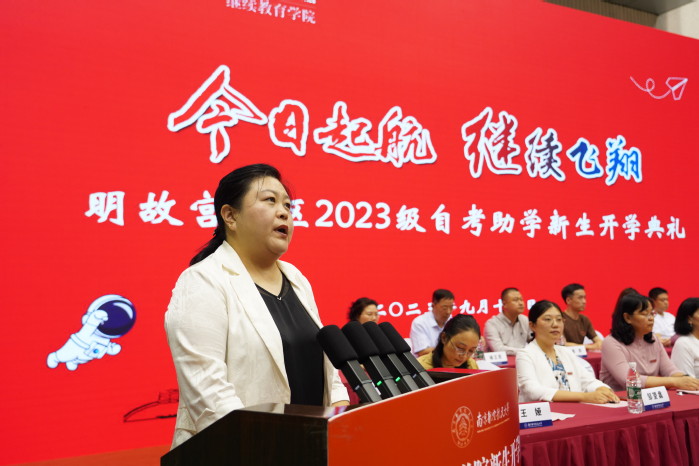 yl6809永利官网天目湖校区、明故宫校区自考助学项目2023级新生开学典礼分别于9月14日、16日在两校区隆重举行,全体院领导、相关系部办主任、教师代表、辅导员、教务员、技能单位代表及全国各地1500余名新生参加了典礼。典礼由学院党委副书记尹春苹主持。
