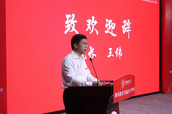 院长王伟致欢迎辞。王院长向2023级新同学表示了热烈欢迎。他向全体新生介绍了学校的总体概况和学院发展情况,并向新生提了要求和希望:一是要坚守出发的初心,心怀梦想、心系家国;二是要坚定学习的初心,学会独立、保持热爱;三是要坚持做人的初心,坚守道德、端正品行。王院长还勉励同学们,要珍惜在南航的时光,不负韶华,刻苦钻研,勇攀高峰,学院也将不遗余力地为同学们成长成才、全面发展提供最大最好的舞台。