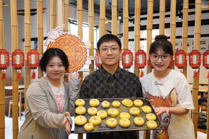 活动以传统中秋佳节为背景,为师生们准备了与中秋有关的互动环节。活动伊始,师生一起动手制作月饼,体验传统美食的制作过程。揉面团、包馅料,挑选自己喜欢的月饼模具,给月饼印上花纹,看着一个个精致的月饼脱模而出,在获得浓浓乐趣的同时也更加深刻感悟到传统文化的内涵,感受到了学院团结和谐的氛围。月饼进炉等待烤制成熟的间隙,师生轮流上场,猜灯谜、讲故事,共话佳节,进一步感受了传统文化的魅力。