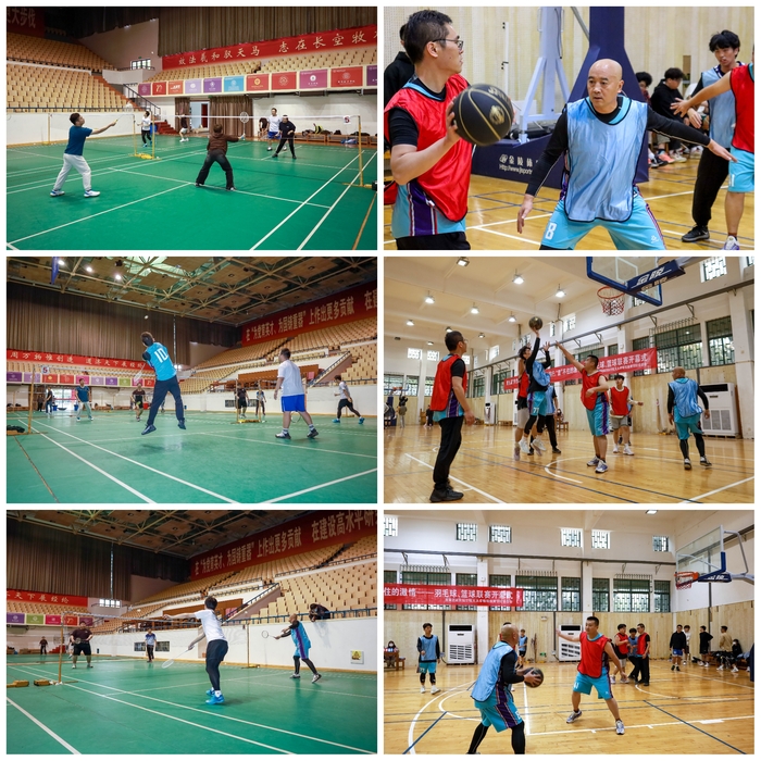 开幕式结束后,继续开展了师生友谊赛。在羽毛球场上,师生们纷纷拿出各自的看家本领,只见羽毛球你来我往,让人目不暇接,眼花缭乱。教工队员邓老师感叹道:”很过瘾!很开心可以借此机会与活力四射的同学们一起运动,一起交流球技,也希望借此带动同学们积极参与运动,享受健康生活!”与此同时,篮球场上的比赛也进行得尤其火热,师生们出众的技术、默契的配合和精准的投射引得在场观众高声喝彩。现场观赛的冯同学说:“看着他们打得这么精彩,自己也想上场参加了。”这是一次凝心聚力的比赛,展现了我院师生积极向上、拼搏进取的精神风貌,传递着浓浓的师生情谊。