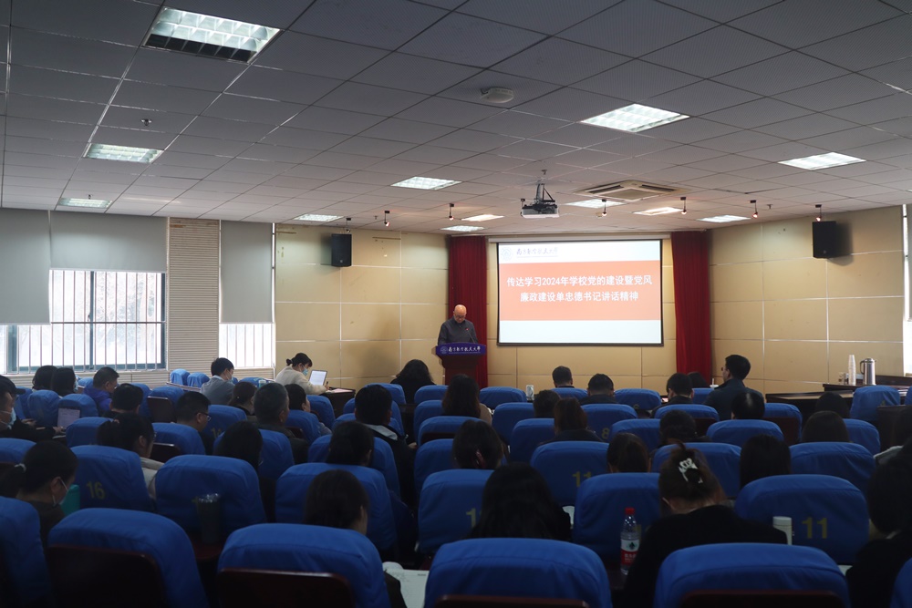 会上,刘建成传达了校党委书记单忠德在学校2024年干部教师大会、党的建设暨党风廉政建设工作会上的报告及讲话精神。他强调,2024年是学校“高质量发展年”,面对社会发展的新形势,学校发展的新要求,在校党委的正确领导下,学院将切实履行全面从严治党主体责任,努力营造学院健康发展的政治环境。