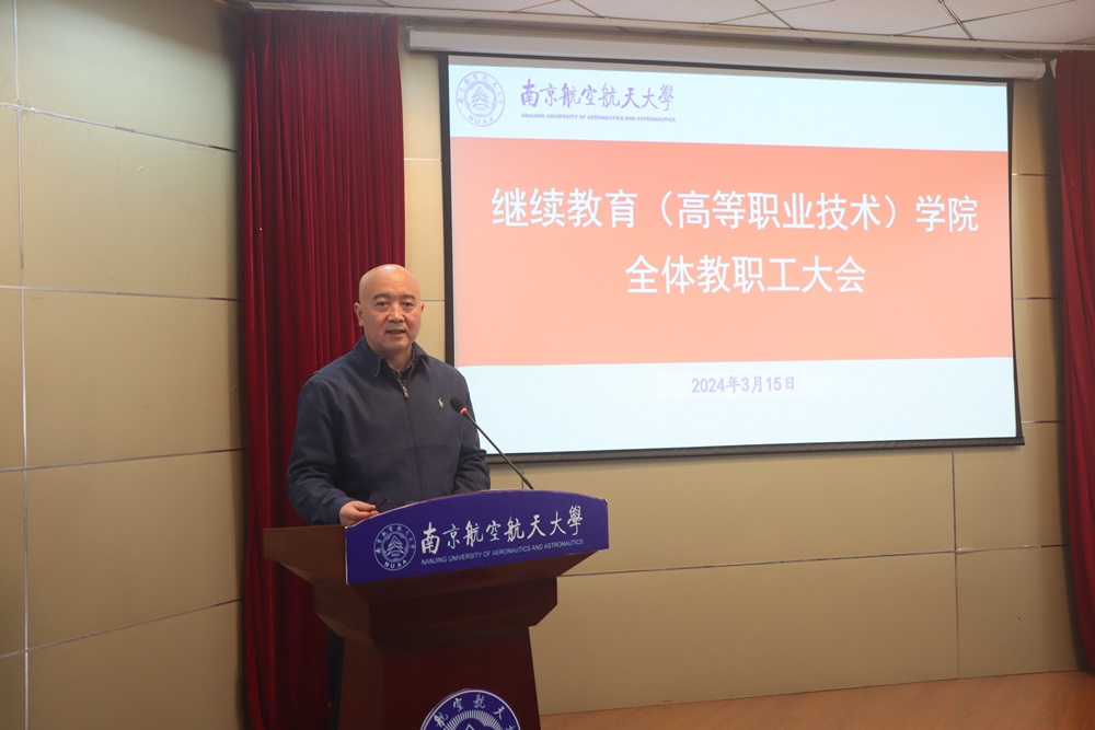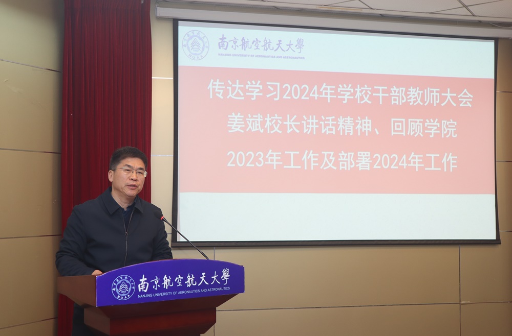 刘建成总结时强调,2024年是全面贯彻党的二十大精神、奋力实现“十四五”规划目标任务、持续落实学校第十七次党代会决策部署的关键之年。学院党委要不断提高党的建设工作质量,纵深推进全面从严治党,拿出功成不必在我、功成必定有我的昂扬姿态,展现出敢闯敢拼、敢为人先的奋勇担当,要以高质量党建引领推动学院事业高质量发展;要对学院年度各项目标和任务进行细化,一项一项分解、一条一条落实,扎扎实实向前推进,在加快建设航空航天民航特色鲜明的世界一流大学上迈出更大步伐做出继续教育贡献。