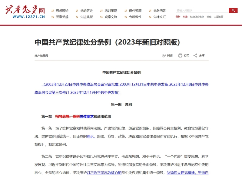 中国共产党纪律处分条例(2023年新旧对照版)_共产党员网 (12371.cn)