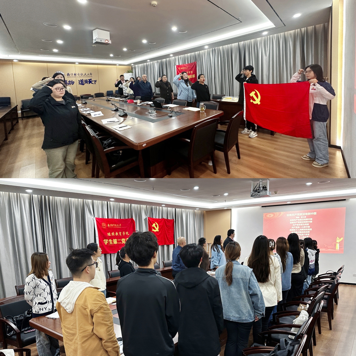 活动的第二部分:“温”一次入党誓词——强化意识,“唱”一首红色歌曲——凝聚力量。全体师生党员面向党旗、深情庄严、高举右拳铿锵有力地宣誓。通过重温入党誓词,让大家深刻体会作为党员的责任、使命和荣耀,进一步坚定理想信念,促进党员政治意识的提升。接着,全体党员齐唱了《没有共产党就没有新中国》,以催人奋进、雄壮豪迈的歌声抒发心中爱国情感、凝聚意志力量。