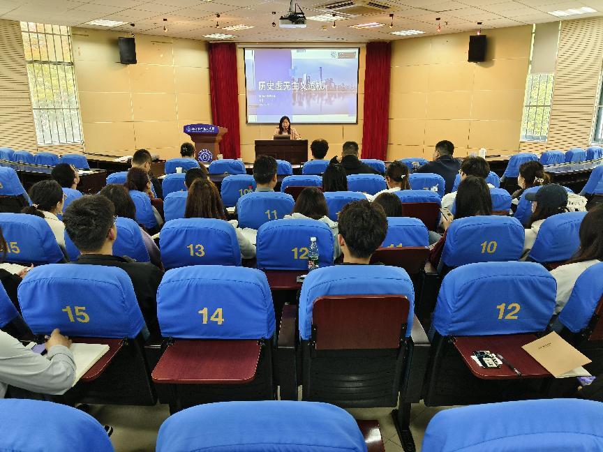何畏从“何谓历史、玄机何在、错在何处、意欲何为”四个方面对历史虚无主义进行了深刻阐述,既有理论阐释,又有大量支撑案例。她指出,历史是连接过去、现在和未来的桥梁,重视历史、研究历史、借鉴历史是中华民族5000多年文明史的一个优良传统。作为文明延续的重要纽带、民族精神传承的基本载体、治国安邦的经验宝库、启迪人生的智慧向导,历史不容忽视和遗忘。她强调,了解历史,必须坚持“大历史观”,全面地、客观地了解历史的整体面貌,而非片面的、碎片化的时刻瞬间。要从事实的真实性和规律的真实性两个层面去辩证的理解何为真实的历史,要明白理解历史的真实不简单等于真实的历史。要旗帜鲜明反对历史虚无主义,加强思想引导和理论辨析,澄清对党史上一些重大历史问题的模糊认识和片面理解,更好正本清源、固本培元。她希望同学们能够坚守事实真相,通过深入研究和全面了解历史,来正确认识历史的发展和演变。要重视历史意义,注重历史的温故知新,积极传承和弘扬民族文化,以正确的历史认识和传承为指导,为构建更加美好的未来而努力。