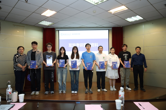 会上,刘建成书记、王伟院长、尹春苹副书记为2025届考研学生代表发放了考研复习资料。