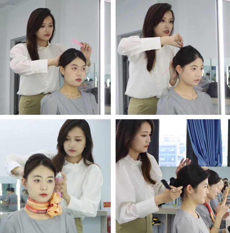 培训活动分为礼仪妆造与礼仪形体两个部分。在礼仪妆造培训中,曹靓老师结合学生的面部特点,详细讲解了化妆的基本步骤和技巧,现场演示了如何运用不同的化妆工具和产品打造出自然、清新的妆容。同学们在学习过程中不仅掌握了化妆的基本技能,也感受到了自我形象塑造的重要性。