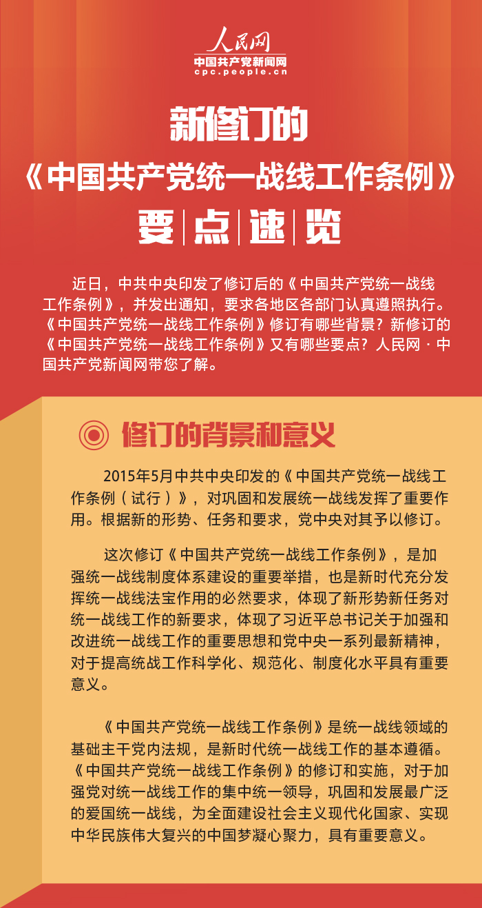 相关链接:新修订的《中国共产党统一战线工作条例》要点速览
