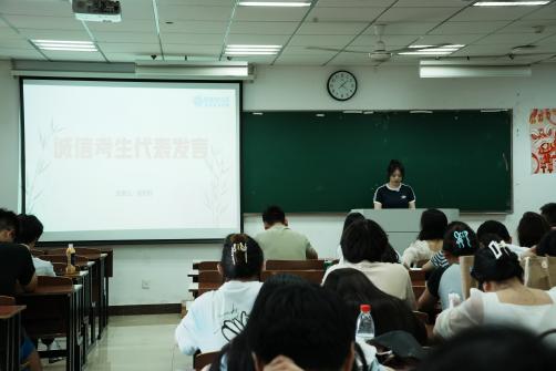 “诚信是立人之本,诚实是行事之道。”为进一步夯实诚实守信的优良学风,培育风清气正的考试环境,学院团委于6月20日在A11-311教室召开“考之以诚,答之以信”诚信考试动员大会。全体班长与团支书参加大会,学生管理办公室学生工作主管戴安娜、熊啟龙,团委指导老师车拉克以及2023级全体辅导员出席大会。大会由2023级韩可伊同学主持。