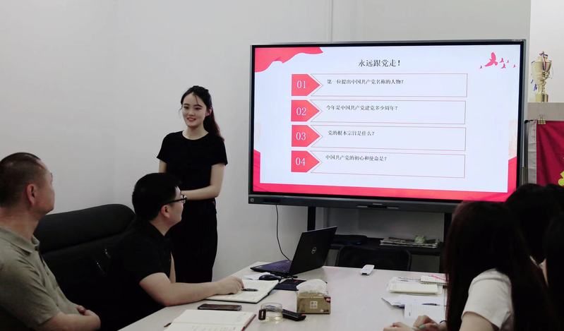 在党史知识竞答环节,学生党员张钰同志带领大家开展了党史知识竞答比赛,通过互动参与竞赛答题的方式,融趣味性、教育性、实用性为一体,让大家在轻松活泼的氛围中学习了党史知识,让党史知识深入人心。
