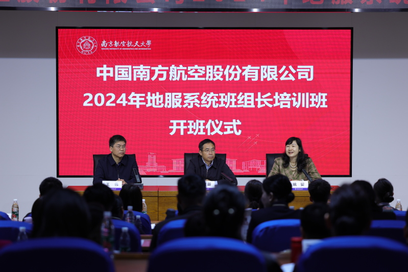 中国南方航空股份有限公司地面服务保障部党委书记姚㛃同志,南京航空航天大学党委副书记、纪委书记杭育新同志出席开班仪式并致辞。杭育新书记对远道而来的各位优秀班组长表示热烈欢迎,简要介绍了我校办学历程及学术成就,并勉励学员们充分利用南航丰富的教育资源,“主动学习,积极交流,碰撞思想”,为南方航空公司地服系统高质量发展贡献智慧和力量。姚㛃书记对南京航空航天大学的精心组织与安排表示感谢,她强调了组织此次培训班的重要意义,并期望学员们通过系统学习,提升地服系统班组长管理水平和沟通能力,推动班组建设工作全面提质增效,打通基层管理的最后一公里。