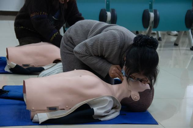 培训中,秦淮区红十字会的专业讲师们系统的讲解了应急救护的基础知识、心肺复苏术、AED的使用方法、海姆立克急救法等多方面内容。着重强调的急救原则和流程,为应急处置提供科学规范的指引。尤其是心肺复苏术理论讲解,从心脏骤停原理到胸外按压与人工呼吸细节,都让老师们深刻领会到每一个操作环节都至关重要。