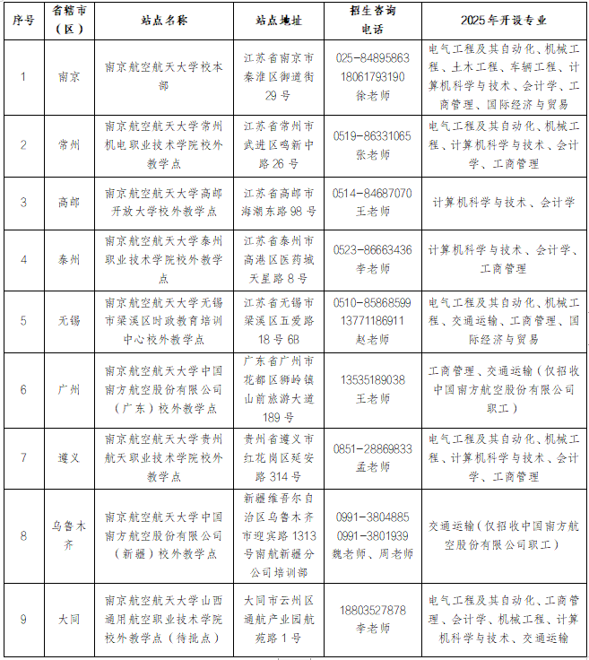 1.除南京航空航天大学校本部和正式备案的校外教学点外,学校从未授权任何机构或个人进行高等学历学院招生宣传。请广大考生切勿相信社会机构或个人宣传的诸如“代报名”“免考包过”“不上课不考试就可发文凭”等虚假信息。