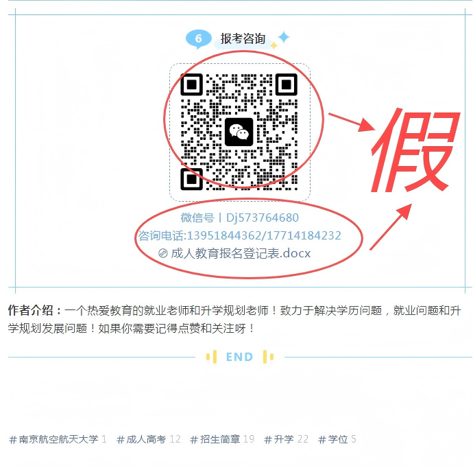 近日我校发现,百度贴吧、小红书、抖音等媒体出现假冒南京航空航天大学或冒充学校工作人员,进行高等学历学院招生宣传和登记,宣传用语、联系老师、联系电话(13951844362、17714184232、13073447595)、登记表均属虚假不实信息,严重违反高等学历学院招生相关要求,对我校社会办学声誉造成严重影响,部分网页截图如下: